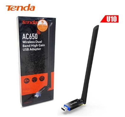 ADAPTADOR USB WIFI TENDA U10 AC650 DUALBAND HIGH GAIN WIRELESS 1 ANTENA 6DBI BOX S/FUENTE