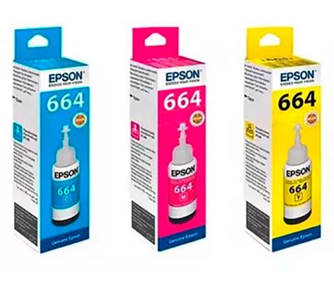 COMBO TINTAS EPSON ORIGINALES T 664 COLORES CYAN MAGENTA AMARILLO 70ML