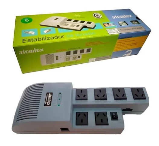 ESTABILIZADOR ATOMLUX R1000 220V 6 TOMAS BOX