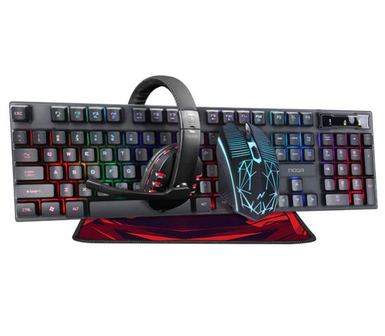 KIT TECLADO MOUSE USB+PADMOUSE+AURICULAR 2X3.5.MM NOGANET NKB-407 4EN1 BOX
