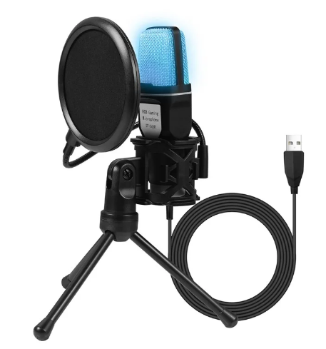 MICROFONO YANMAI SF-666R USB CABLE 1.35MTS OMNIDIRECCIONAL CONDENSADORES REDUCCION DE RUIDO RGB CON TRIPODE