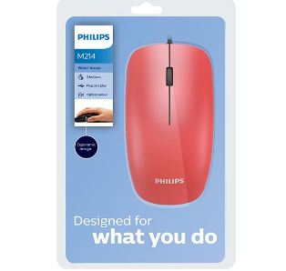 MOUSE USB PHILIPS M214 1000DPI ROJO BOX