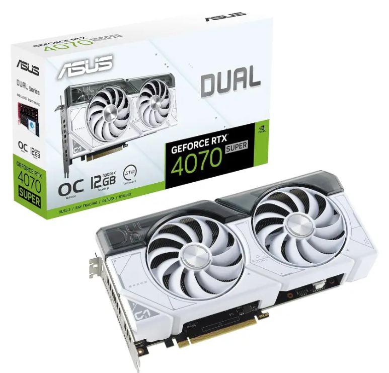 VIDEO NVIDIA ASUS RTX 4070 SUPER 12GB GDDR6X DUAL OC EDITION WHITE BOX